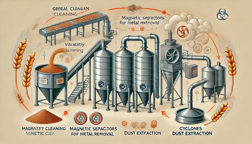 La limpieza de los cereales es importante en la recepción y esencial durante la extracción, asegurando que estén libres de impurezas y metales, principalmente antes de la molienda.