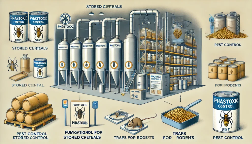 Se utiliza phostoxina, un fumigante eficaz, para combatir las infestaciones de insectos. Este tratamiento asegura que los cereales se mantengan libres de plagas durante el almacenamiento.